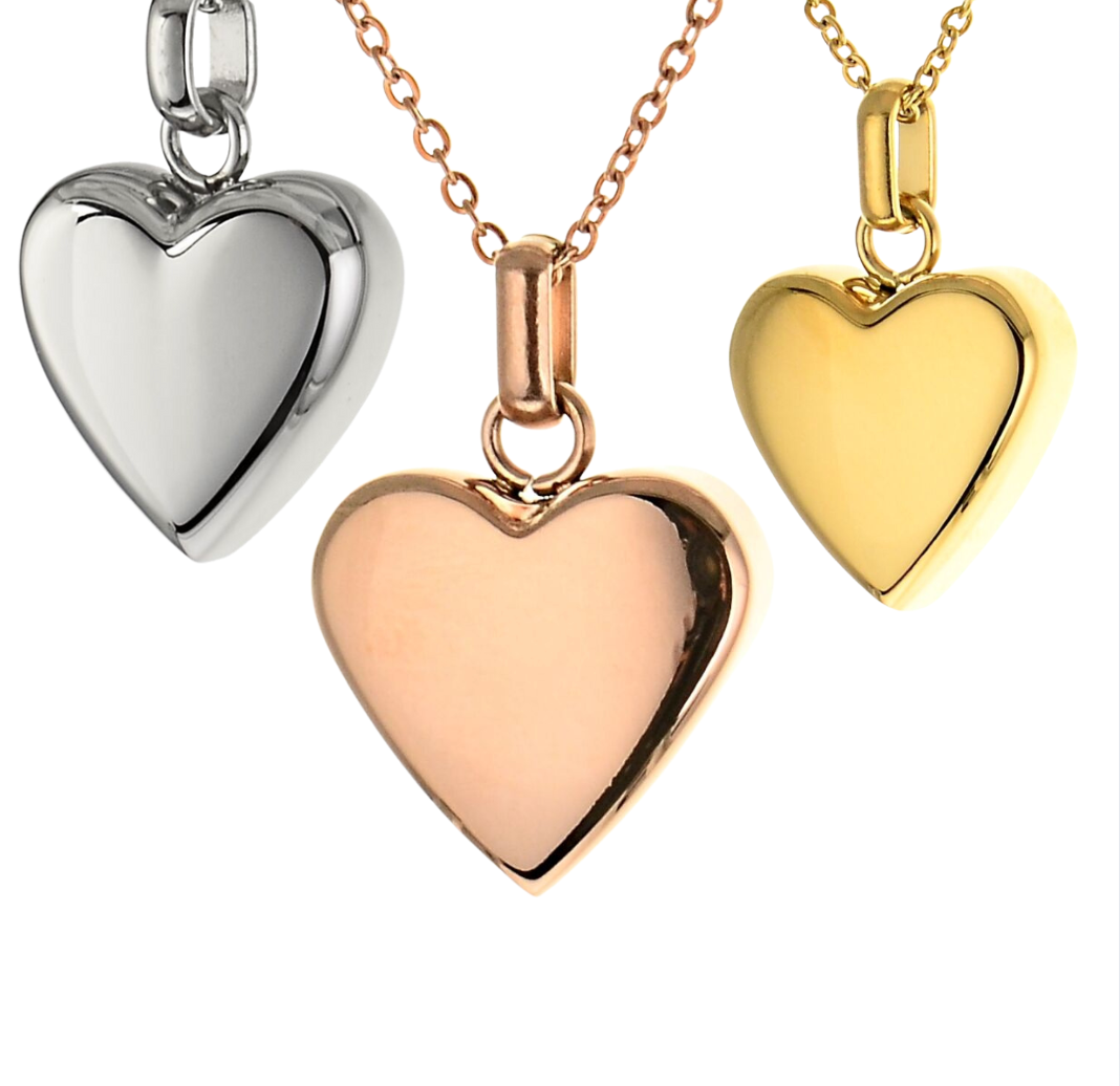 Dieser hochglanzpolierte Ascheanhänger in Herzform wird aus gegossenem Edelstahl gefertigt. Im Inneren des Schmuckstücks können Sie einen kleinen symbolischen Teil der Asche oder ein anderes Erinnerungsstück Ihres verstorbenen Lieblings sicher aufbewahren. Zum Befüllen befindet sich an der Seite des Anhängers eine Schraube.