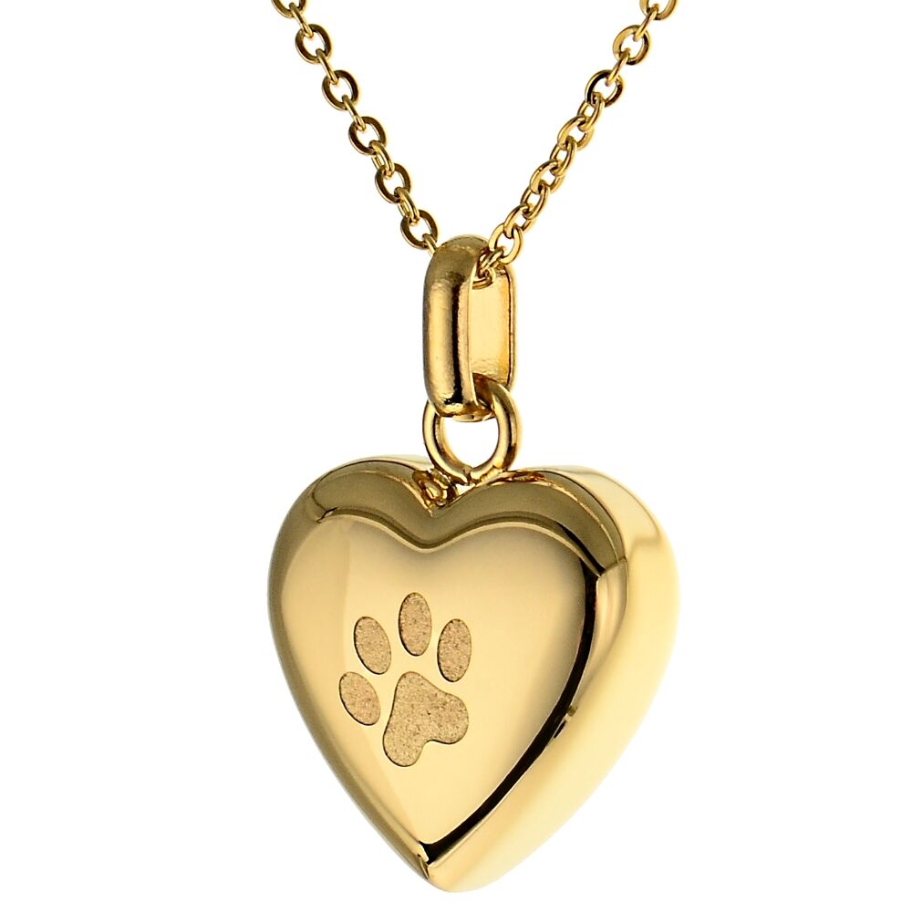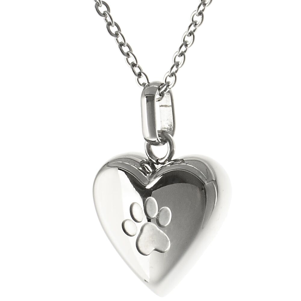 Dieser Ascheanhänger wird aus hochwertigem, hochglanzpoliertem Edelstahl gefertigt und ist mit einer Pfote verziert. Im Inneren des Medaillons können Sie einen kleinen symbolischen Teil der Asche oder ein anderes Erinnerungsstück Ihres verstorbenen Lieblings sicher aufbewahren. Das Verschließen erfolgt über einen Schraubverschluss am seitlichen Boden des Anhängers.