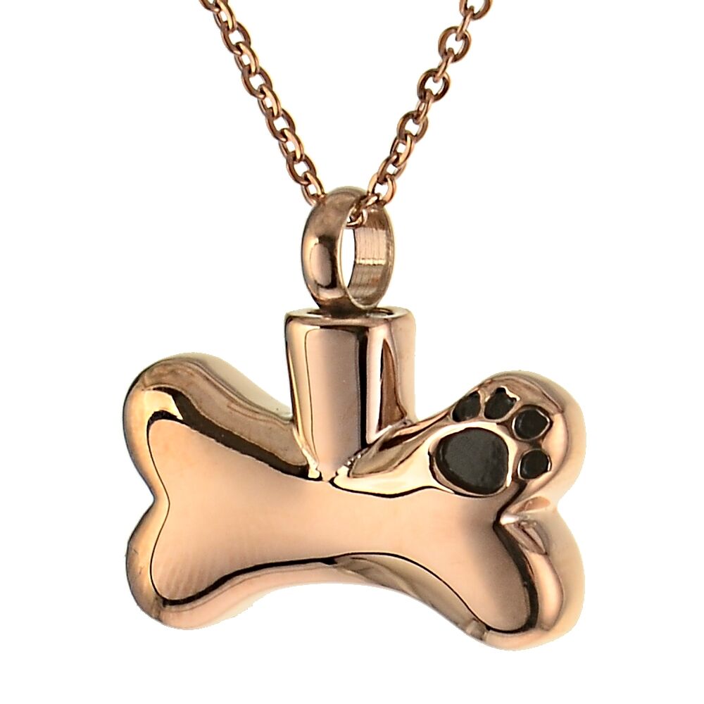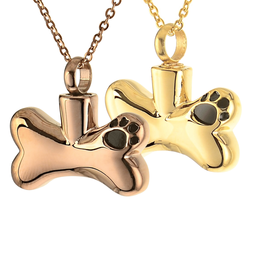 Dieser Ascheanhänger in Form eines Knochens wird aus hochwertigem Edelstahl gefertigt und ist mit einer schwarzen Pfote verziert. Die Öffnung zum Befüllen befindet sich unter der Öse. Ein Präzisionsgewinde mit Dichtring sorgt dafür, dass der wertvolle Inhalt sicher verschlossen und vor Feuchtigkeit geschützt bleibt.
