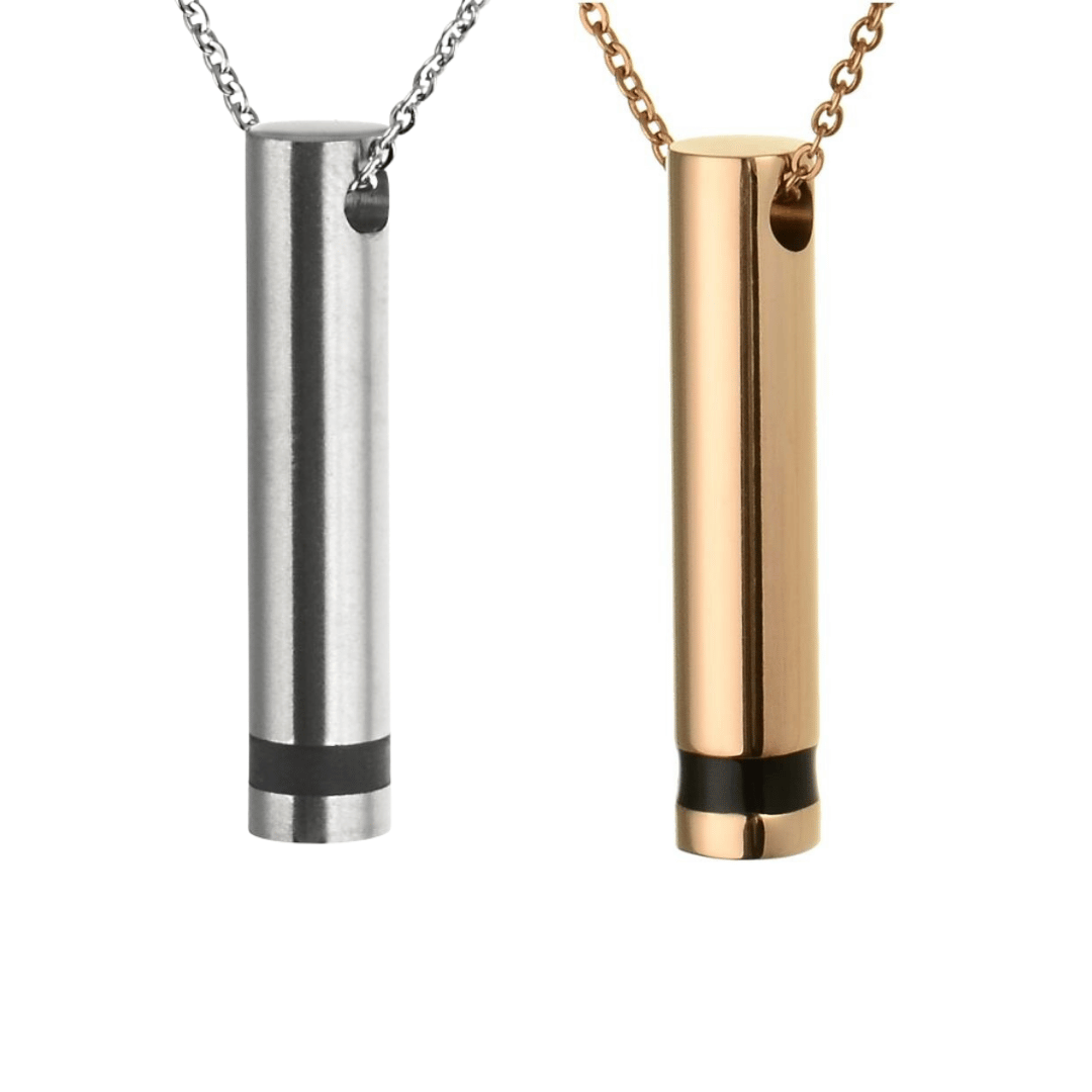Dieser Ascheanhänger in Zylinderform besteht aus hochwertigem Edelstahl. Die Kettenführung verläuft direkt durch den Anhänger, was für eine sichere und elegante Befestigung sorgt.