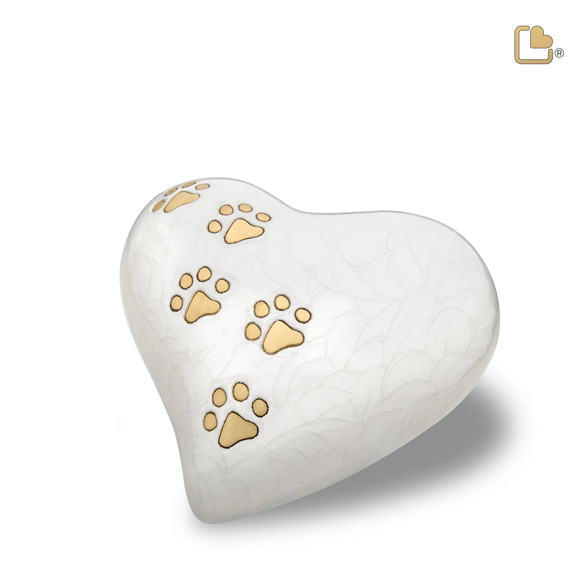 Bewahren Sie die Erinnerung an Ihr geliebtes Haustier auf würdevolle Weise mit dieser formschönen Herzurne aus Metall. In stilvollem Design gefertigt, ist die Urne mit liebevoll gestalteten Pfotenabdrücken verziert – ein Symbol für die Spuren, die Ihr Tier für immer in Ihrem Herzen hinterlässt.