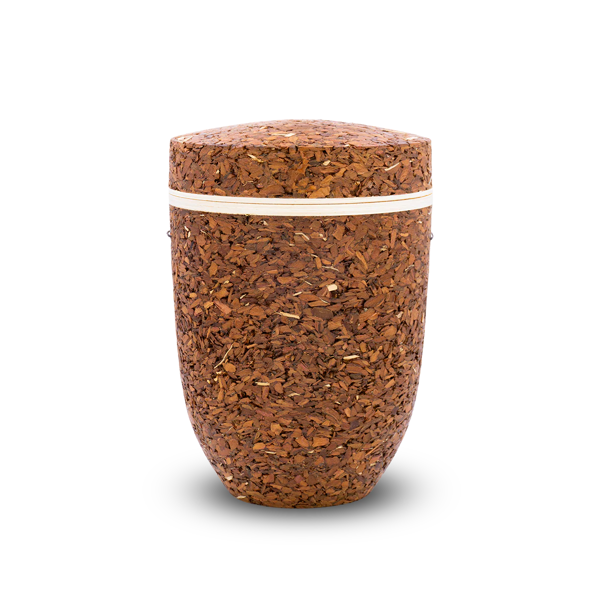 Die Natururnen werden aus bislang ungenutzten Rohstoffen gefertigt. In Sägewerken anfallende Nebenprodukte wie Baumrinde und Stammabschnitte, die bisher überwiegend verbrannt wurden, finden hier eine neue Bestimmung. So entstehen Urnen mit einer einzigartigen Optik und Haptik sowie einem natürlichen Duft, der an einen Spaziergang im Wald erinnert.